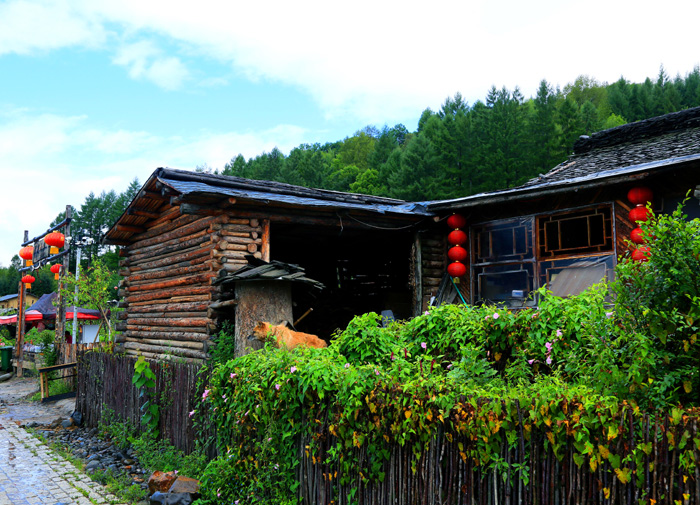 在夏末秋初时节来此,除了古朴的屋舍特色外略显单调。但是人们可以感觉到,如果冬季到此一游,那白雪皑皑的木屋村冬景一定会更美!此时,站在坡上远远的望见长白山,袅袅炊烟升起,浓浓的东北风情中尽显一派质朴的乡村景致。