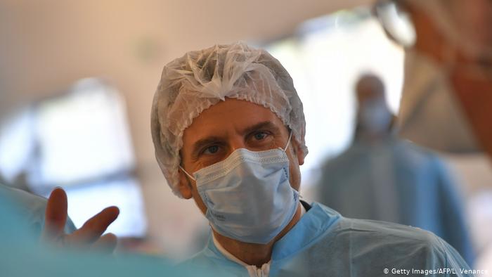 防护用品短缺 法国总统马克龙正视察一家制造防护用品的工厂。在法国,成百上千的医护人员指责政府,在疫情期间没能提供足够的防护服。许多医疗人员依旧在坚持工作。