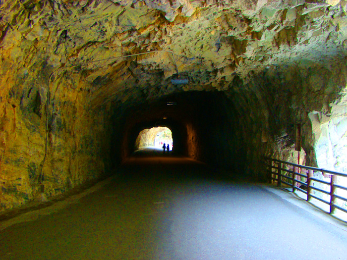在这一路段里,如果说险崖相拥、天光乍泻的“虎口线天”是尤物天成,那么,隧洞相接、犬牙交错的“九曲洞”则是中横公路建设者们超凡智慧的结晶了。九曲洞步道全程两公里,由一连串的山间隧道和谷中桥梁衔接而成。数不清的隧洞紧傍着立雾溪,一次次的钻进岩腹,左旋右转,忽明忽暗,蔚为壮观。洞壁上有梁寒操者题写的“九曲蟠龙”四个大字,龙飞凤舞;又有黄杰者题写的“如肠之回,如河之曲,人定胜天,开此奇局”的诗句,更为此雄浑奇景凭添一份儒雅。