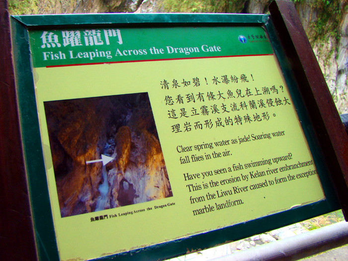 导游小姐冰冰介绍说:“鲁阁”是当地住民泰雅族的语言,原为“桶”的意思,这里悬崖壁立,峡谷幽深,作为当地住民的聚居地,易守难攻,仿若铁桶江山,故称“鲁阁”;引申为连绵雄伟险峻之意,通称为太鲁阁。