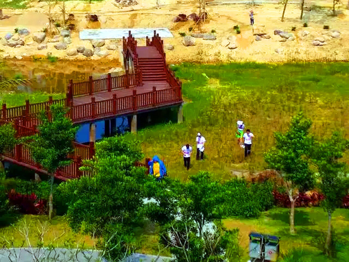 记者走出海口美兰机场经过两小时左右车程,顺利抵达下榻的琼中黎族苗族自治县的云湖迎宾巢。这是位于一汪湖水之畔的度假村,距离琼中县城尚有近8公里之遥。所以周边环境青山绿水极为幽静。而中国定向赛琼中分赛区的开幕式将在此举行。