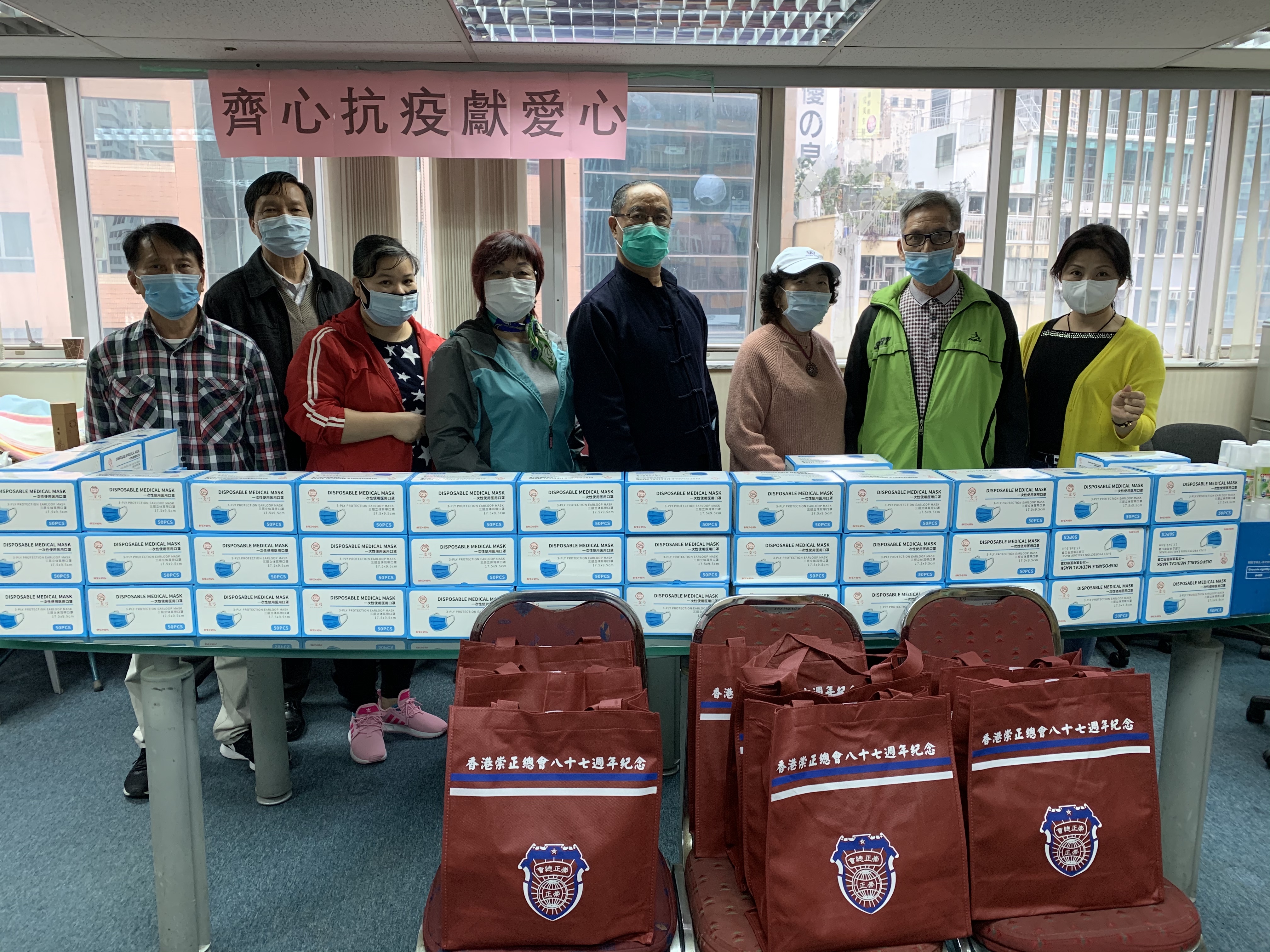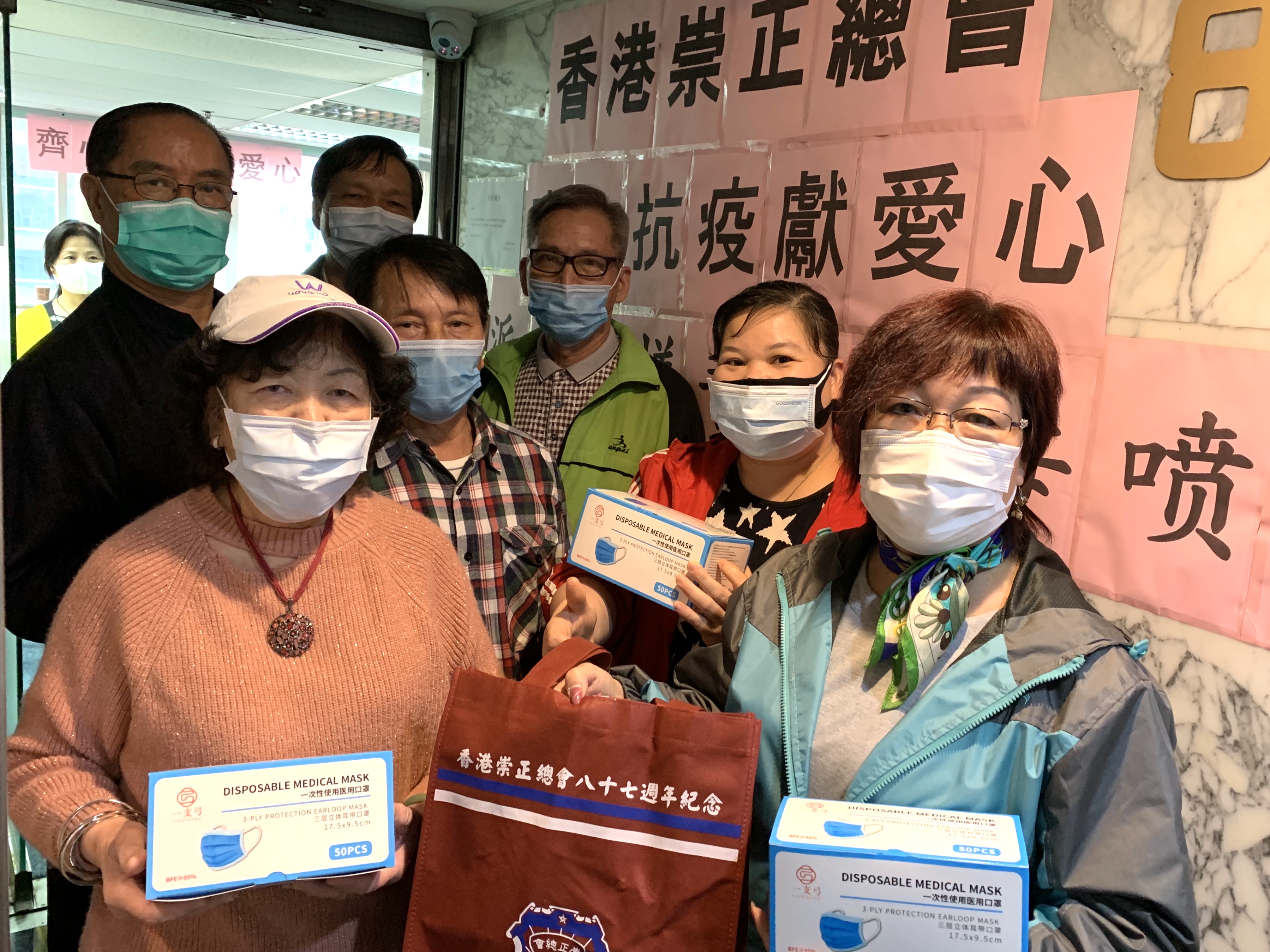 (中華時報訊)新型冠狀病毒肺炎疫情現時在全球日趨嚴重,香港崇正總會於410-11日舉辦“齊心抗疫獻愛心”活動,香港崇正總會第37屆理監事會给會員派送抗疫常用消毒用品包,其中有口罩(一盒/ 50個)、搓手液(1100ml、消毒噴霧(1100ml)。