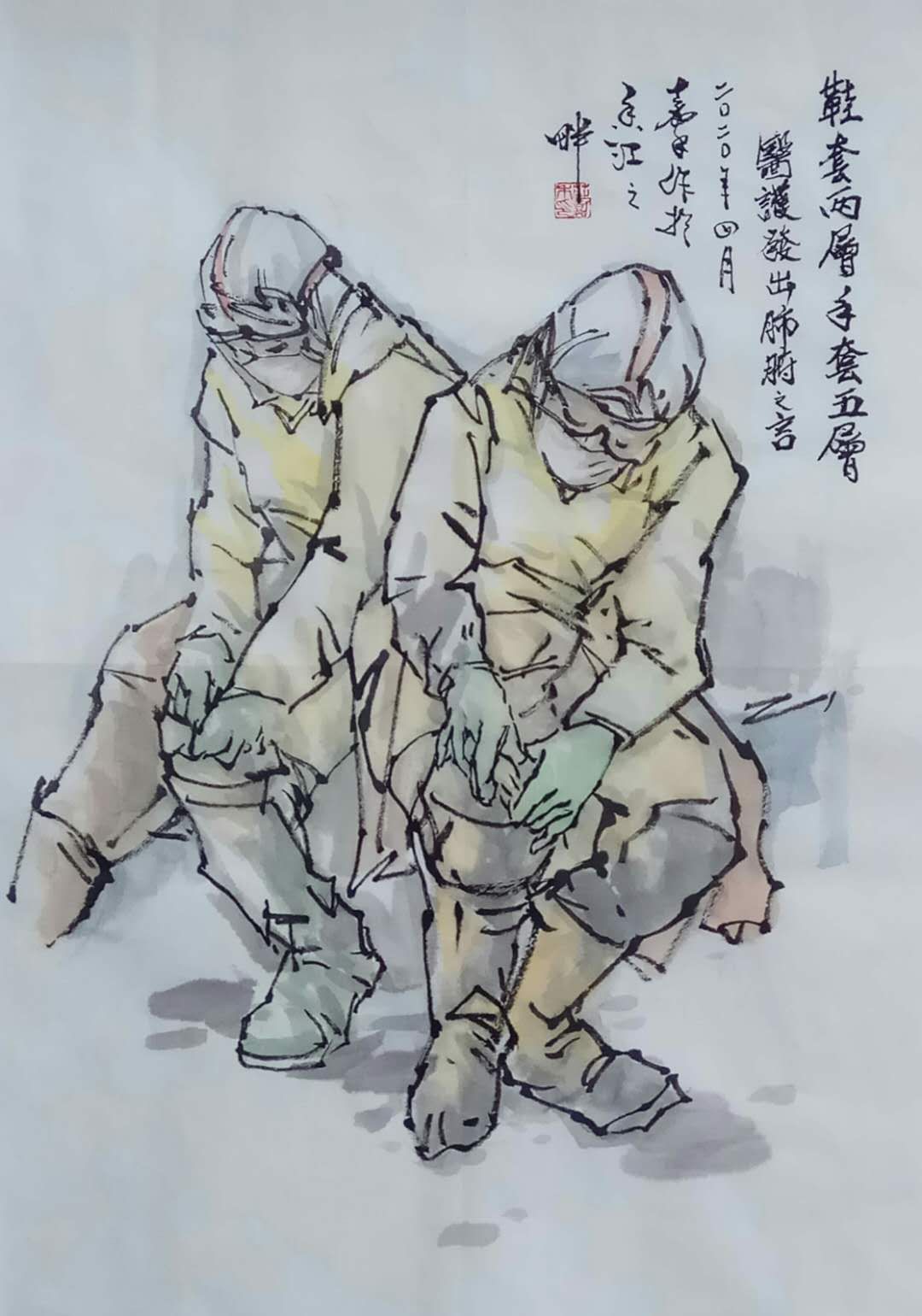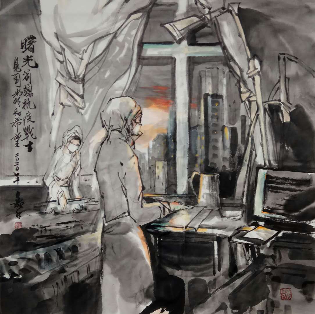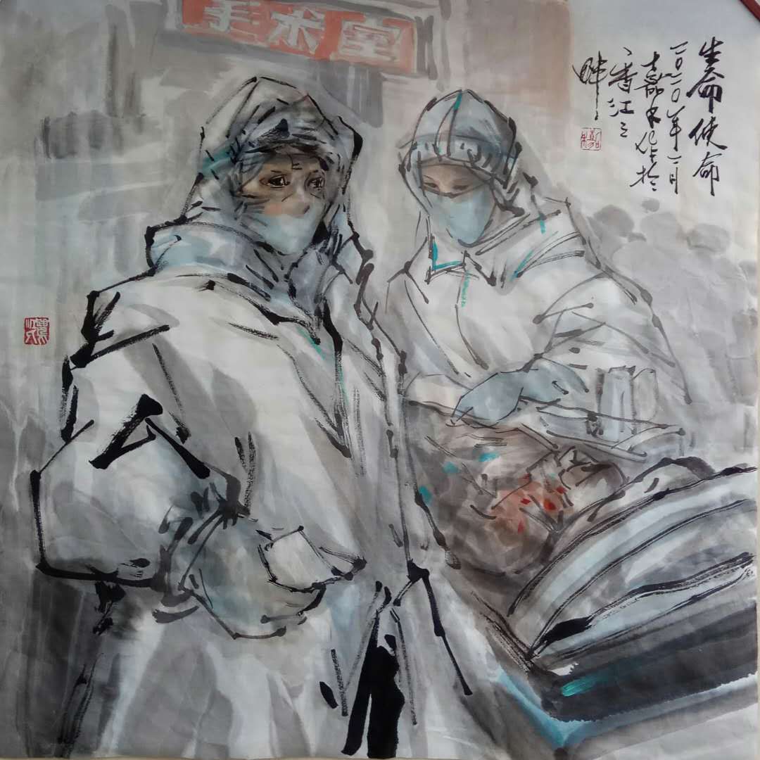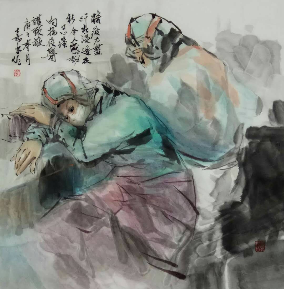 抗疫新冠肺炎,白衣天使為拯救生命夜以繼日作戰在抗疫第一線.用畫寫我心,向無私付出,大愛的醫護英雄致敬!