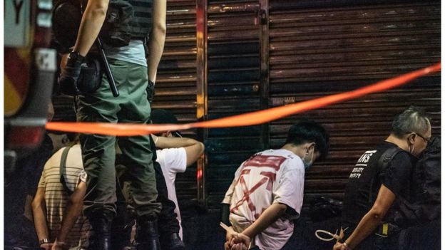 香港警方表示,230人被捕,年齡介乎十二歲至六十五歲,涉及罪名包括非法集結、藏有工具可作非法用途、管有任何物品意圖摧毀或損壞財產、公眾地方行為不檢、阻礙警務人員執行職務、襲警等等,並指從一名22歲的男子身上檢獲懷疑製造汽油彈原料,包括電油、毛巾及打火機,該名男子涉嫌「藏有工具可作非法用途」及「藏毒」被捕。