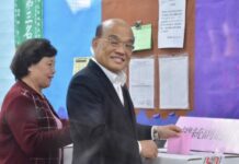 蘇貞昌今天在行政院會率內閣總辭,所有內閣成員依序在總辭公文上簽名或蓋章後,最後由蘇貞昌批示簽呈文稿,完成總辭程序。