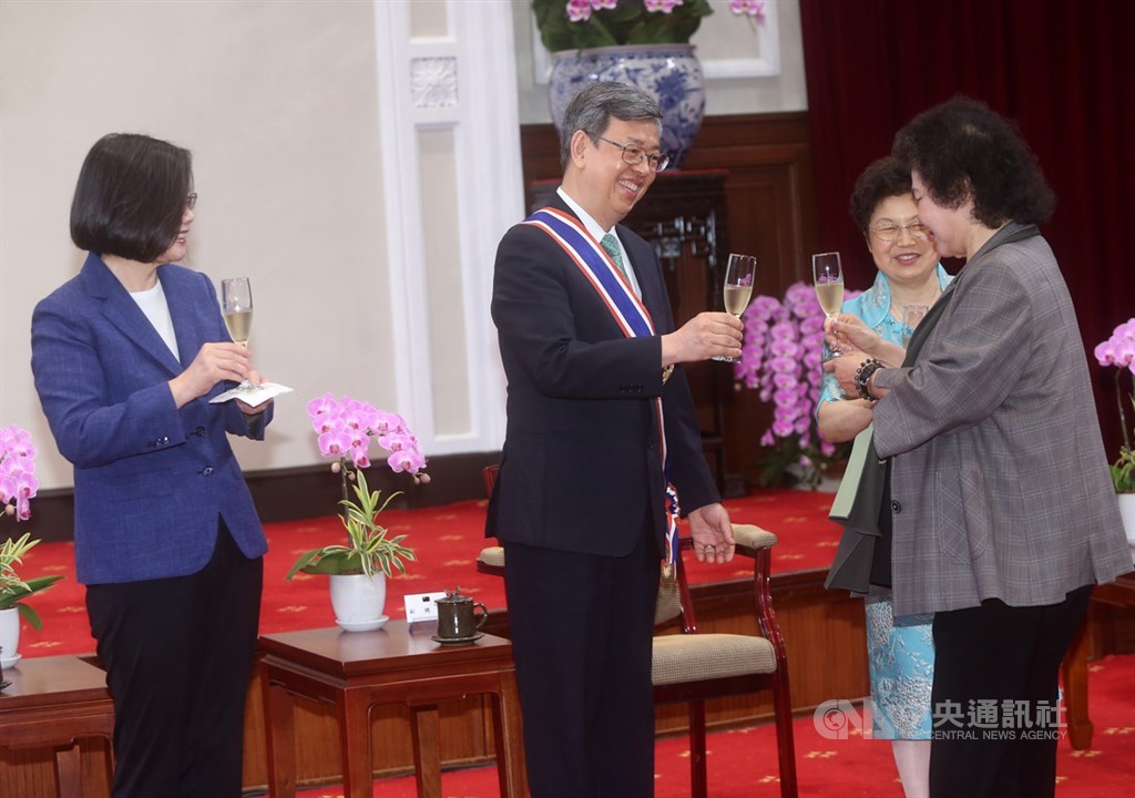 蔡總統提到,很多人說陳副總統是史上最忙碌的副總統,「正是因為我們有這麼溫暖、誠懇、專業又具有責任感的副總統,4年來我們才能推進改革的工作,讓台灣在充滿挑戰的局勢中站穩腳步。」