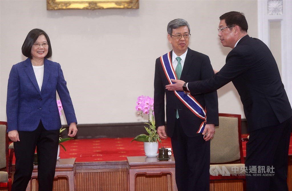 蔡總統再次感謝陳副總統對國家的付出,她說,頒授中山勳章,肯定陳副總統4年任期內承擔起一件又一件充滿挑戰性的任務,包括主持年金改革委員會、推動人權工作、和宗教團體溝通對話及五度代表國家出訪邦交國。