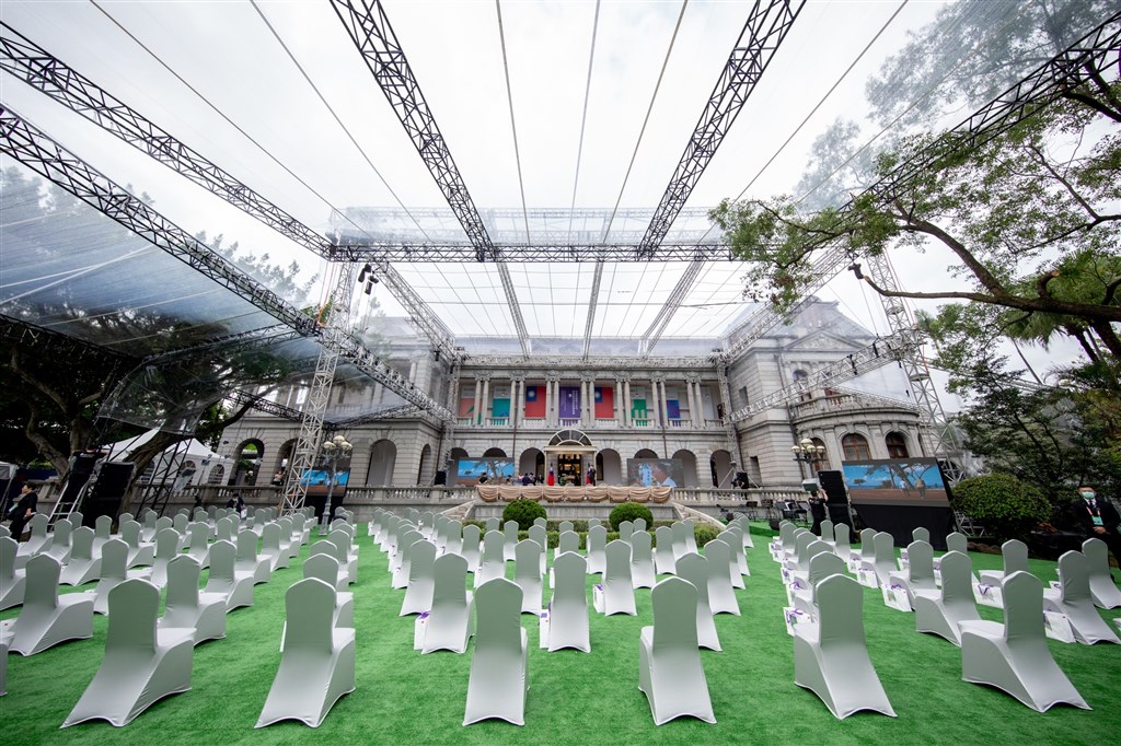 (中華新聞通訊社/中華時報訊)這是一場很不一樣的總統就職典禮。基於防疫考量,總統府早早宣布取消大型活動,中華民國第15任總統蔡英文的就職演說改在台北賓館戶外舉行,僅邀請駐台使節、官員等少數人員參加。因為在戶外,保持社交距離就座觀禮的來賓不必戴口罩,鏡頭捕捉到他們的笑容、表情,台灣疫情漸趨緩和,大家總算能稍微喘口氣了。