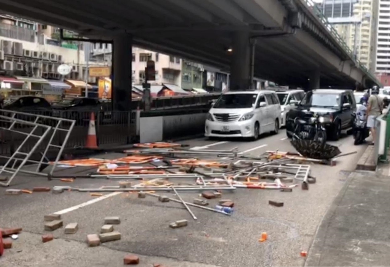 另外,警方指,有人肆意破壞社區設施,包括拆毀馬路鐵欄、擊毀馬路交通燈、撬起路面渠蓋及掘起地面磚頭等,銅鑼灣亦有商舖被破壞,大量玻璃被擊碎。