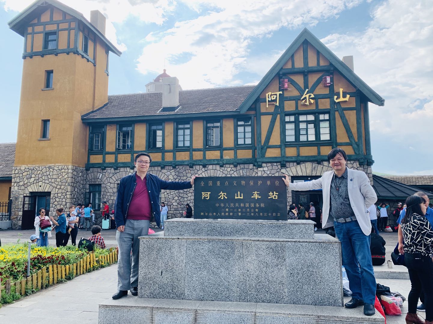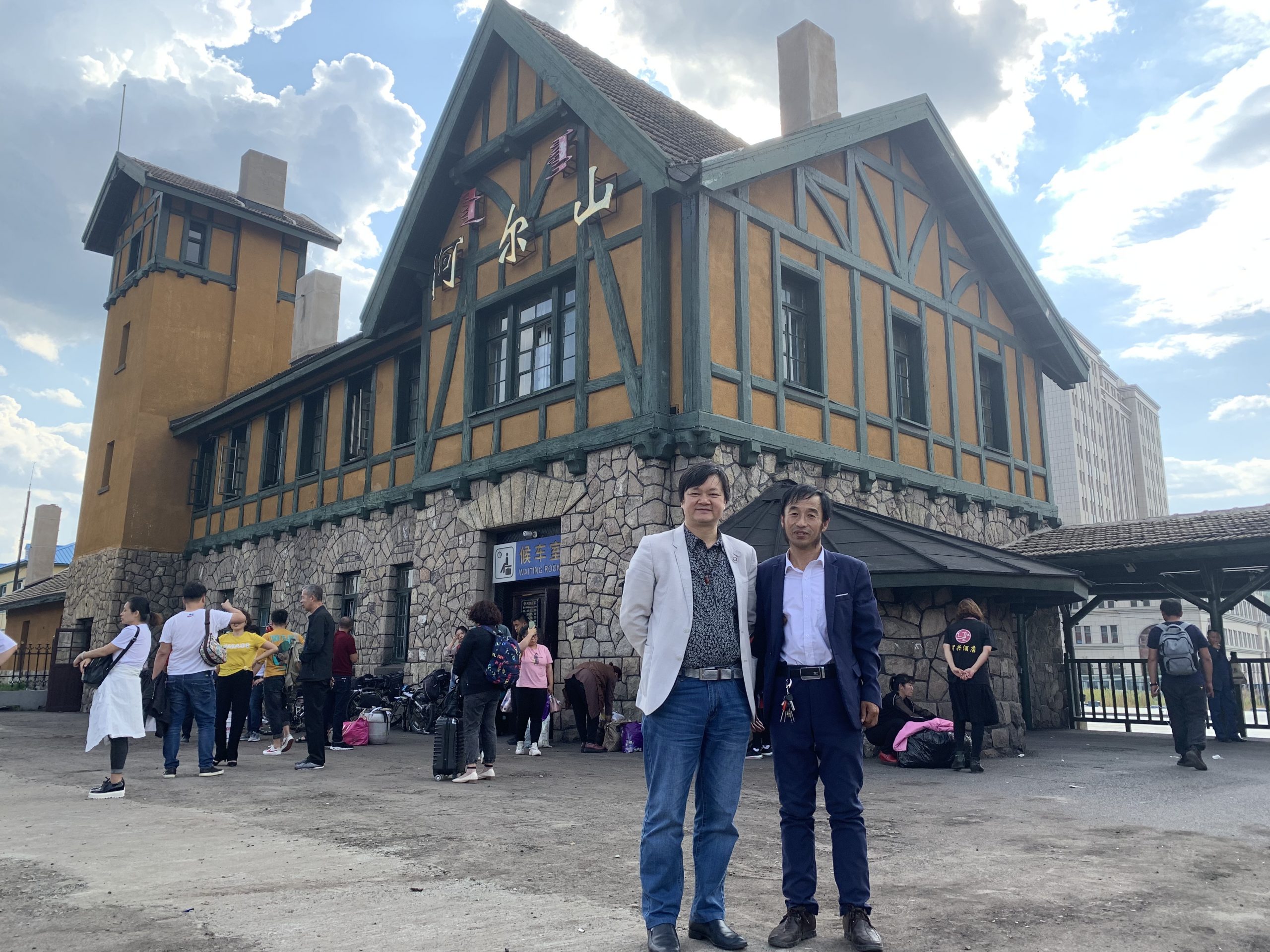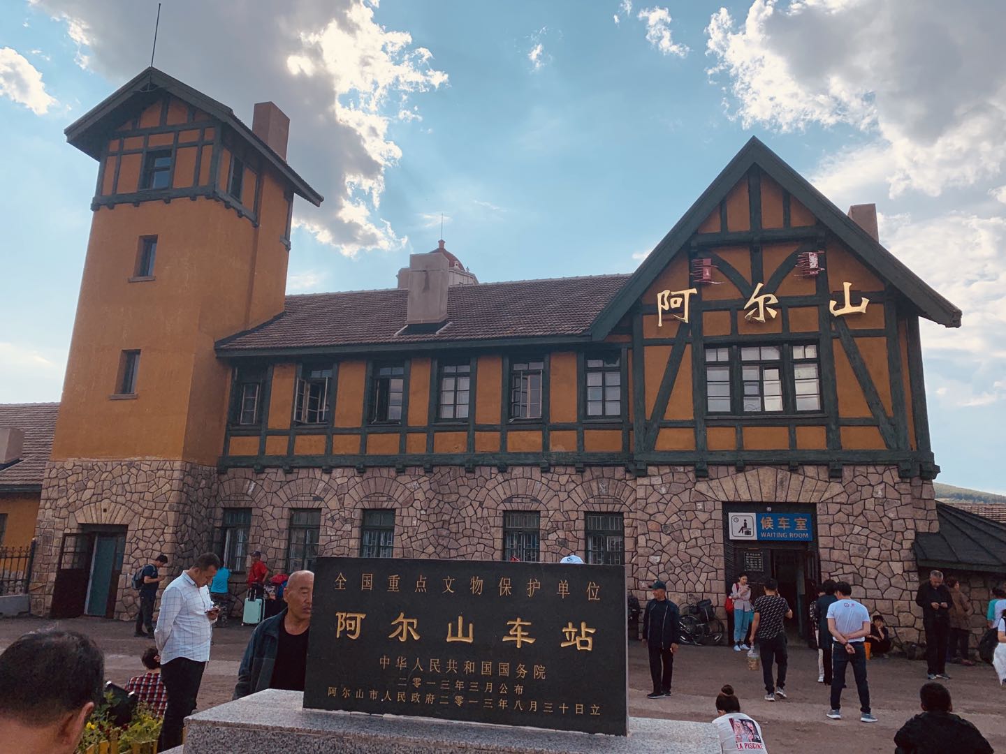 我们来到了中国最小最美火车站——阿尔山站,真不枉此行呀!眼前的阿尔山火车站,它建于1937年,是一幢东洋风格的低檐尖顶二层日式建筑, 一层外壁周围是用花岗岩堆砌的乱插石墙,楼顶用赭色水泥涂盖。如今整个火车站保存完好仍在使用,是内蒙古的重点文物。这是关东军驻扎时期的两层楼房,富有东洋建筑特点。是白(白城)阿(阿尔山)线终点站。车站附近保留有石木结构的日本式疗养楼。据介绍,为精心构造边境风景站,车站在现有站舍基础上,去除现代元素,复原了木栅栏出站口、候车室长条木座椅等,小站也成为当地新的旅游景点。