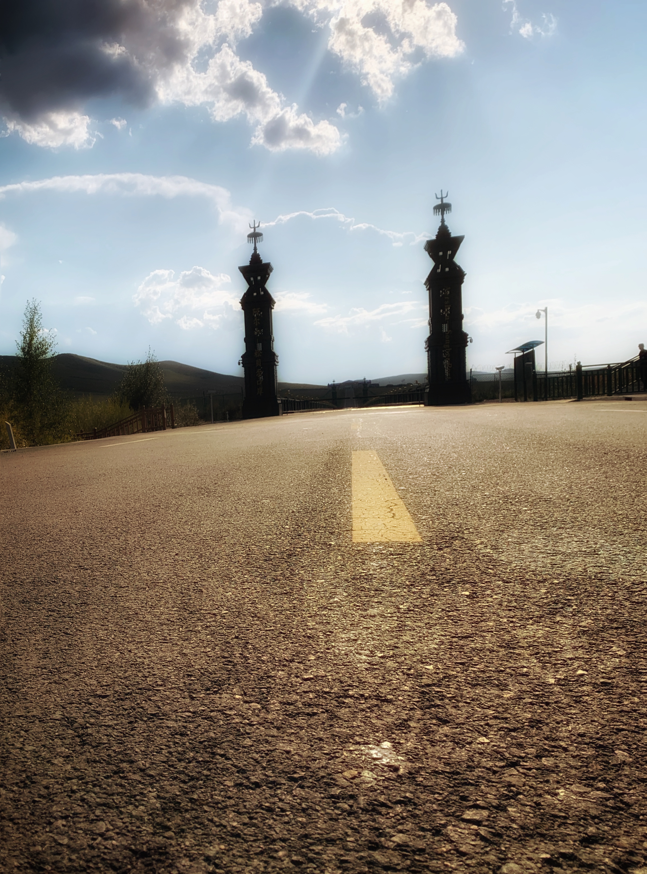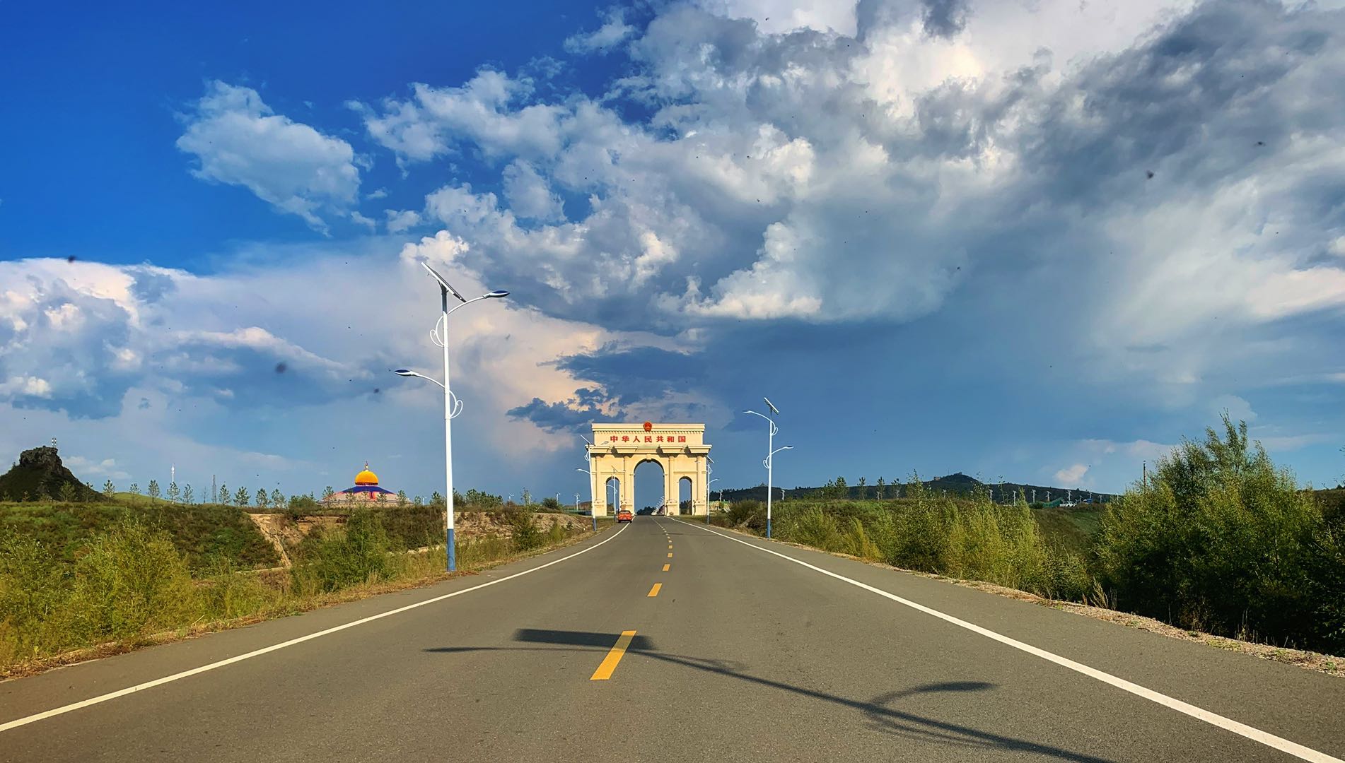 经过一座边防军的营房后,来到了阿尔山口岸。很快,我们就能眺望到国门了。这个国门不算大,我们的车开到了离边界也只有几米的地方,这就是中蒙边界——阿尔山口岸,画家陈国生雕刻“祖国在我心中”的石碑安放在囯门前,阿尔山口岸位于内蒙古兴安盟阿尔山市伊尔施镇,与阿尔山口岸对应的是蒙古国东方省的松贝尔口岸,阿尔山口岸是中国对蒙古国开放的5个国际性口岸之一,景区门票要40元。巍峨壮观的国门,吸引了全国各地的旅游前来参观游玩,合影留念。相比其它等口岸,阿尔山口岸显得有些冷清,人也不多,通关的蒙古国车辆并不多。