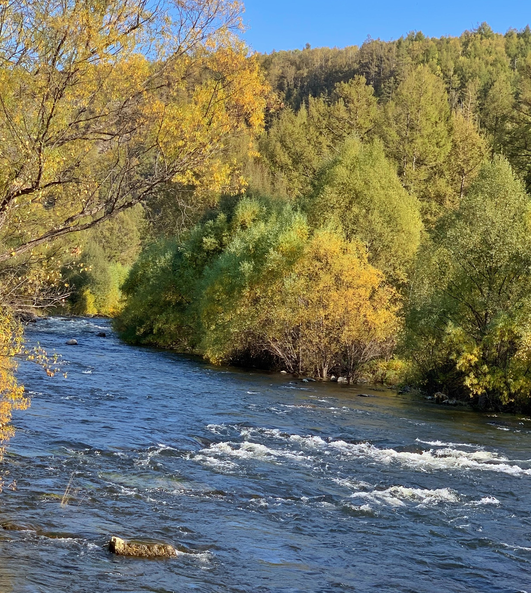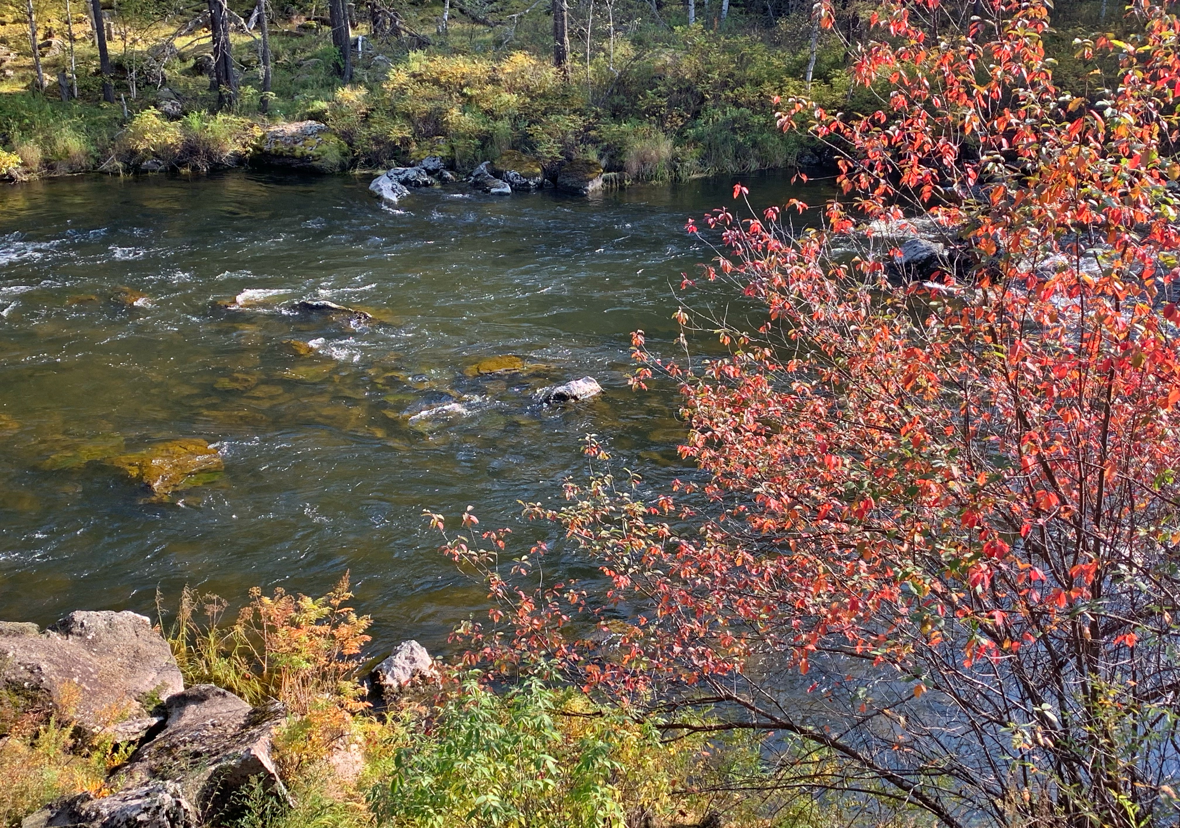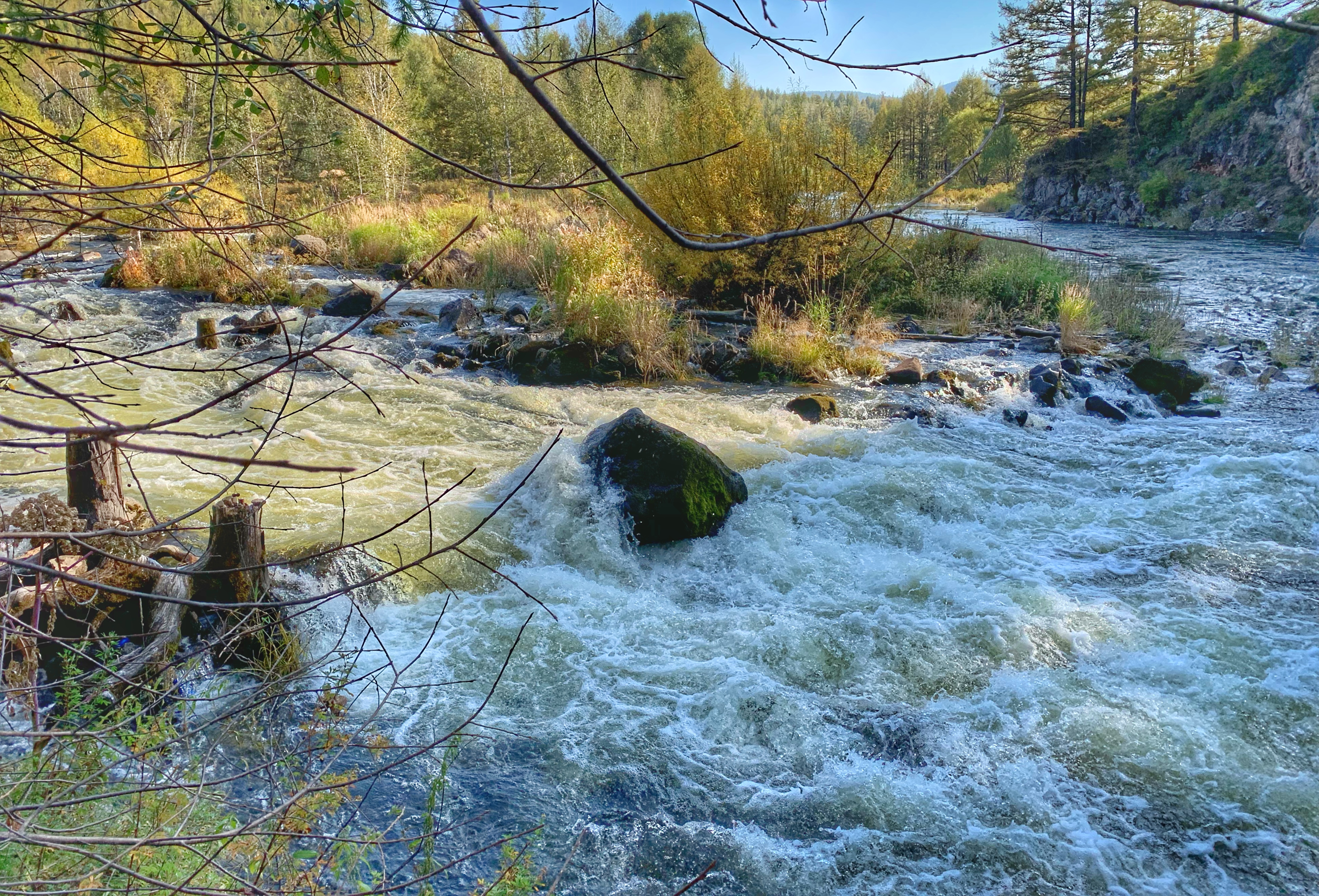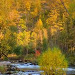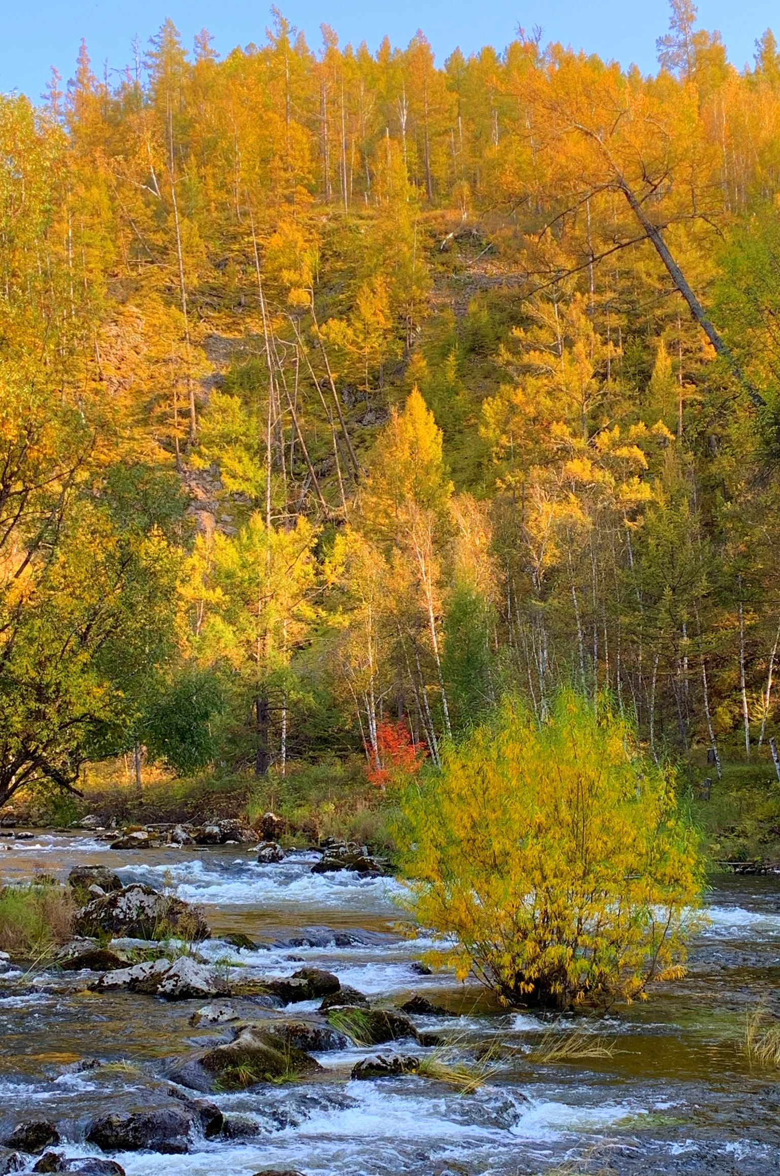 我们也顺便去了石塘林,这里落叶松枝繁叶茂,高山柏遍地延伸,金星梅一片金黄,石与林相依,清流时隐时现,处处景色盎然。