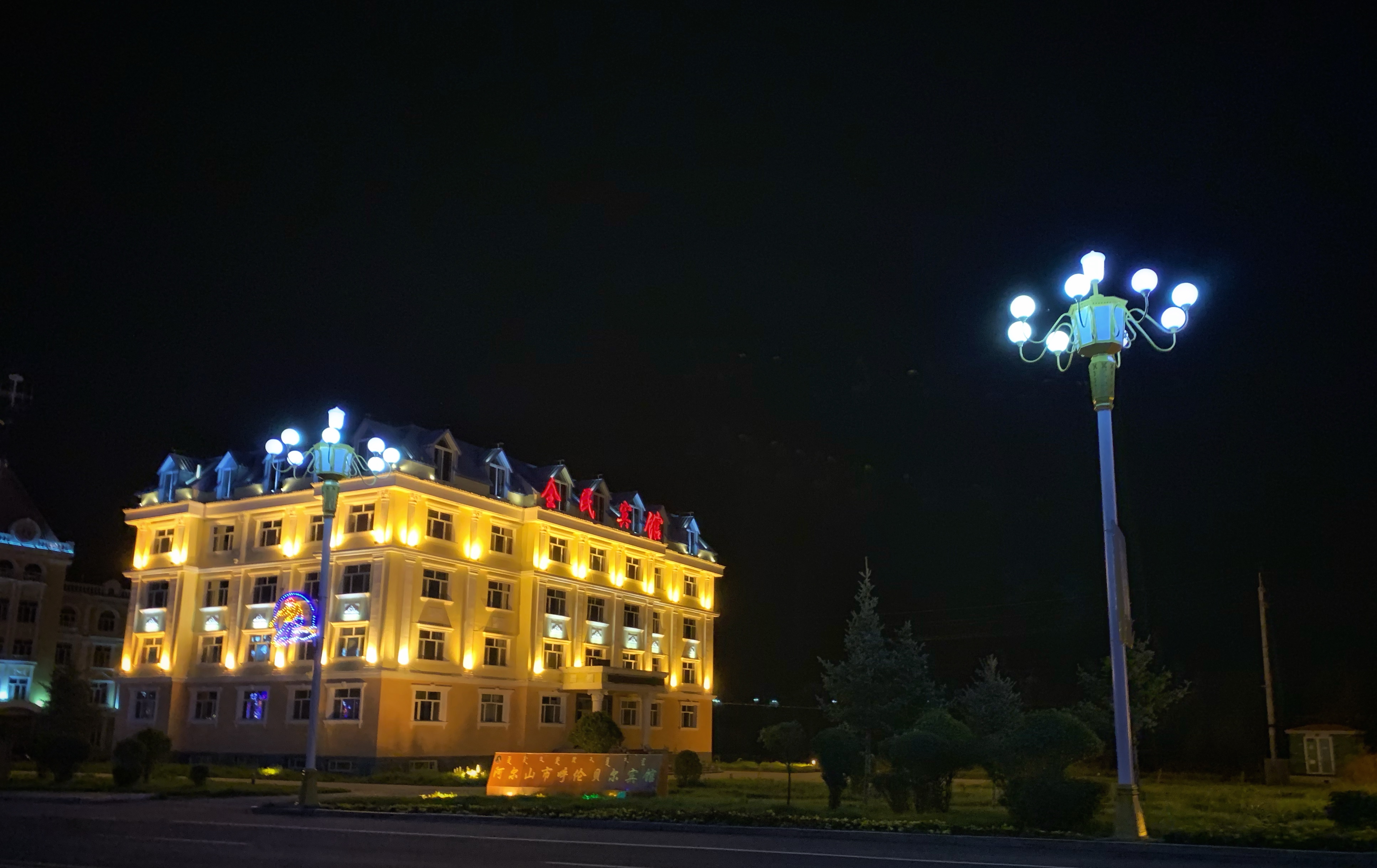 遐逅是缘份,夜幕降临,我与甘肃省围棋协会秘书长蒋立峰从下榻的酒店出来,走一走阿尔山市,也想了解一下夜生活,阿尔山位于中蒙边境,尽管只是一座县级市,我们到处都能见到各种风格的欧式建筑,中西合璧,每到夜幕降临,灯光打在这些高大雄伟的欧式建筑上,就会显得格外吸引眼球。不过,我们走在阿尔山的街头,甚至会恍惚以为自己不小心穿越到了某个欧洲小镇。