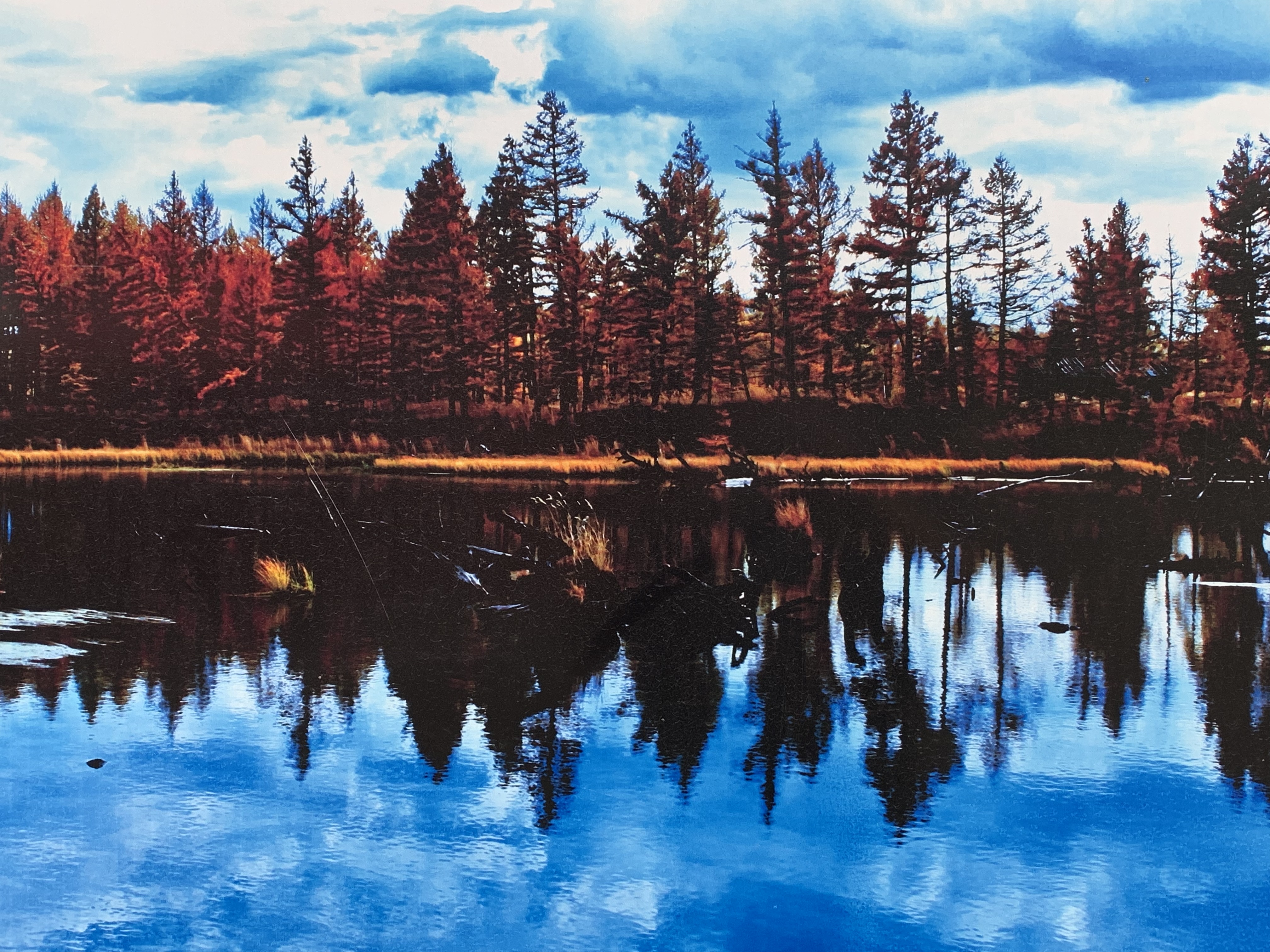 那是深秋的阿尔山四处静谧,湖水静静地在哪里,只有微风吹过,吹皱一汪碧池、吹乱这一拢拢草。