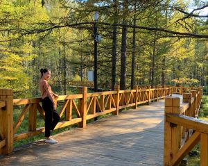 阿尔山的第二天上午,我们参加完“2019首届全国少数民族围棋大赛”,我就迫不及待与甘肃省围棋协会秘书长蒋立峰、宁夏回族自治区围棋协会秘书长毕延青等驱车去阿尔山森林公园,从阿尔山小镇出发,沿途景致依然很美,就是马路面不好,坑坑窪窪簸来到阿尔山森林公园,马路在扩路中。