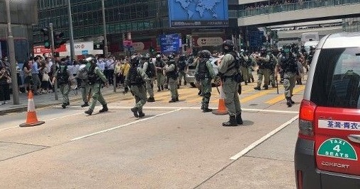 (中華新聞通訊社/中華時報香港訊)港府計劃今日(27日)於立法會大會恢復《國歌條例草案》二讀辯論,有網民今日號召多區堵路,反對港區國安法及國歌法,警方加強警力佈防。其中在中環有市民聚集,期間有人行出馬路,警方一度舉起藍旗警告,並發射多輪胡椒彈球槍驅趕。消息指,警方至今於多區共拘捕約300人。