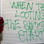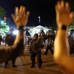 他说自己是重法律与秩序的总统,希望各州州长出动的国民警卫队数量足以“主导街区”,否则他将会出动美国军队,“帮助他们解决问题”。就在他说话的同时,一列军队车辆驶过白宫前的宾夕法尼亚大道。