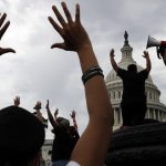 而在首都華盛頓白宮外,警方用催淚煙、胡椒噴霧和閃光彈驅散示威者,多人留守與警方對峙。
