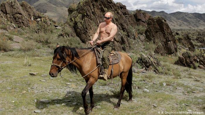 施展魅力秀肌肉 在位20年,个子虽小,却练就一身肌肉的普京深谙将个人魅力转化为权力之道。这张光膀子骑马照只是拥有柔道黑带八段的普京诸多“炫酷秀肌照”中的一张而已。照片摄于2009年3月,当时56岁的普京不在总统任上,而是任政府总理。因宪法的任期限制,2008年,已连任一届总统的普京不得再度参选总统。于是,普京任内担任总理的梅德韦杰夫当选总统,并立即任命普京为政府总理。