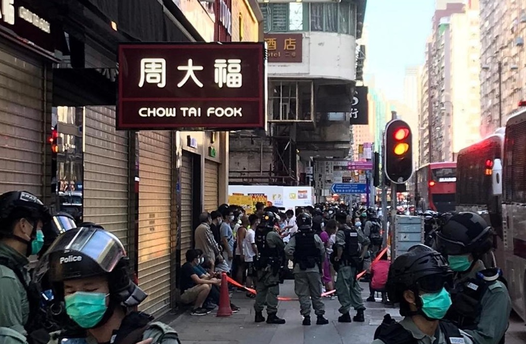 警方在社交網站表示,下午約3時起,佐敦至旺角一帶有人群沿彌敦道遊行,有人走出馬路,亦有人叫囂,警方多次警告,人群依然拒絕聽從指示離開,繼續在旺角集結及叫囂,其中在登打士街附近有人推撞警察,警方一度施放胡椒噴劑。