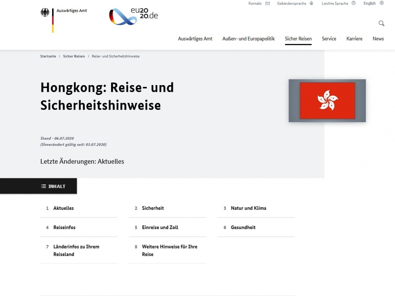 德國更新旅遊警示,呼籲在香港的德國公民注意言論避免觸犯「港區國安法」。
