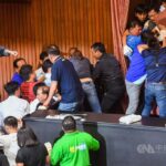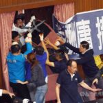 為求明天能順利行使同意權投票,民進黨團今天下午15時47分進場,與國民黨立委爆發嚴重推擠;部分國民黨立委遭民進黨立委抬走後,群起繞到側門,再從議場後門猛撞,讓民進黨立委反而遭到包圍。