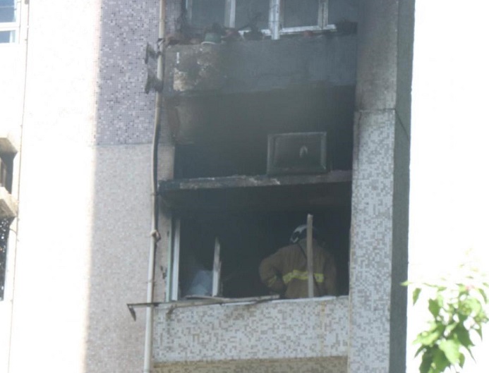 火警現場是葵裕閣5樓一個單位,睡房內發現一具女性屍體。警方說,起火單位住有一家三口,初步相信死者是一名34歲女子。