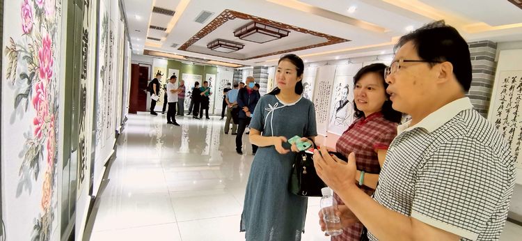 当天上午10点半举行了开幕式,由中华琴棋书画研究院秘书长姜敏主持,济南市委宣传部原副部长韩圣喜致开幕词。济南市天桥区文联主席冉舸、原山东省委办公厅副主任任培金、济南市委宣传部文化产业处处长张宏、著名东夷文化学者骨刻文书法艺术家中国古文字学会副会长丁再献、中华国际琴棋书画研究院院长朱锡实出席开幕式并致辞,原济南空军副司令王全博、山东省通俗文艺研究会苏志君会长、原山东省司法厅工会主席阴法宜、济南海大书画院院长赵大海、山东省通俗文艺研究会齐鲁非遗研究院院长兼济南泉水人家和泉水文化高峰论坛创始人刘士奇、日照银行解放路支行王云飞、传统文化网总编黄星华、全国著名媒体人和知名作家王奎杰、中国孔子书画研究院宣传部副部长兼巜英模网》总编和巜辉煌山东》特刊副主编刘昌义、中华时报主任记者廖泽平及部分书画爱好者近百人参加了开幕式。