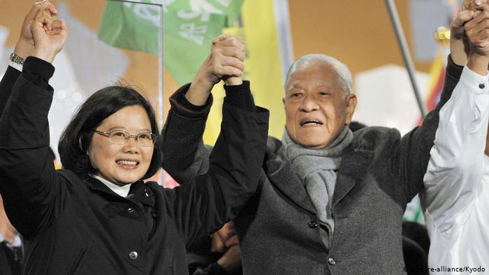 遭国民党撤党籍 卸任总统后,李登辉成为台湾主体意识的重要捍卫者。2001年9月,由于公开支持新成立的台湾团结联盟,国民党正式撤销李登辉的党籍。图为2012年1月13日李登辉在总统大选造势晚会上为蔡英文站台。