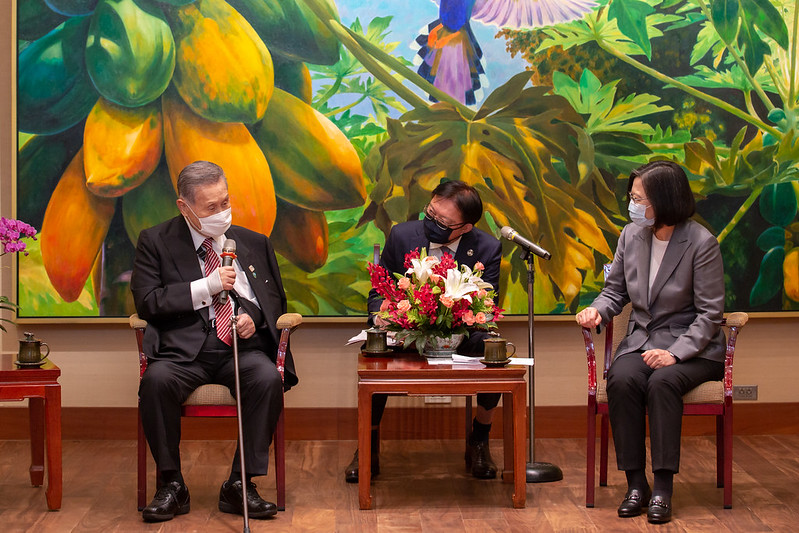 訪賓一行尚包括日華議員懇談會會長古屋圭司眾議員、牧島かれん眾議員、日本台灣交流協會理事長谷崎泰明及台北事務所代表泉裕泰等,由外交部長吳釗燮及「臺灣日本關係協會」會長邱義仁陪同,前來總統府晉見總統,總統府秘書長李大維也在座。