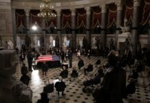 到星期六黄昏时刻,悼念群众挤满了最高法院前的街道。悼念者聆听美国民权运动时期的代表性歌曲 “改变即将到来” (A Change Is Gonna Come”, 以及一些重要人士的演讲,其中包括麻萨诸塞州女参议员沃伦(Elizabeth Warren)。