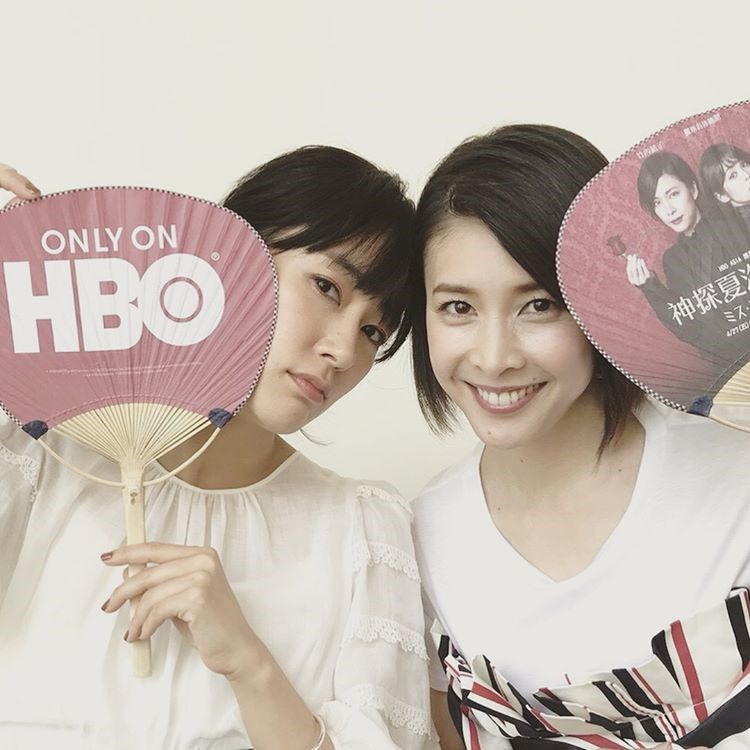 竹內結子(右)2018年主演影集「神探夏洛克小姐」,並來台灣宣傳。圖左為演員水川麻美。(圖取自instagram.com/yuko_takeuchi0401)