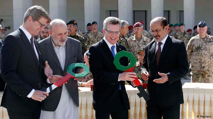 德国撤军 2013年10月6日,时任德国国防部长德迈齐埃(Thomas de Maiziere)和外长韦斯特韦勒(Guido Westerwelle) 将位于昆都士的德军营地移交给阿富汗政府。