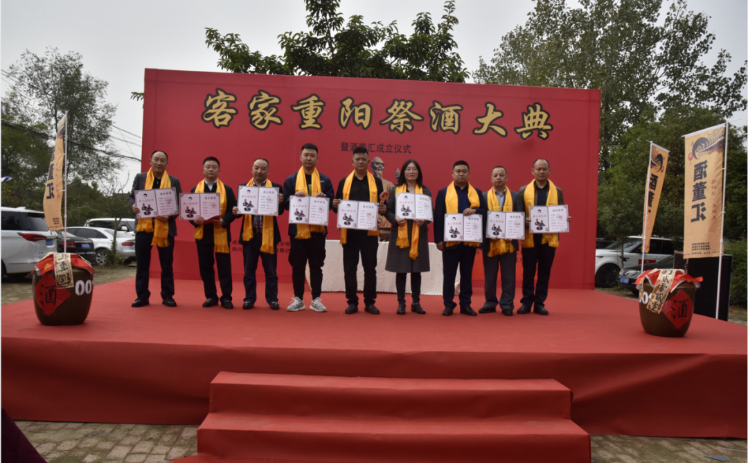 酒董汇首任会长吴修明为大家介绍的酒董汇的由来和成立酒董汇的初衷,希望以酒董汇为平台,汇集海内外客家朋友,“喝好酒,交好友”。吴会长还同酒董汇执行会长林先富、李强学一起为钟世钦、张兴定、李天久、钟远超、李盛清、李军、刘开亮送上酒董汇顾问聘书。希望各位领导给予酒董汇大力支持和指导。随后,酒董汇各位会长同顾问一起进行重阳美酒封坛仪式。