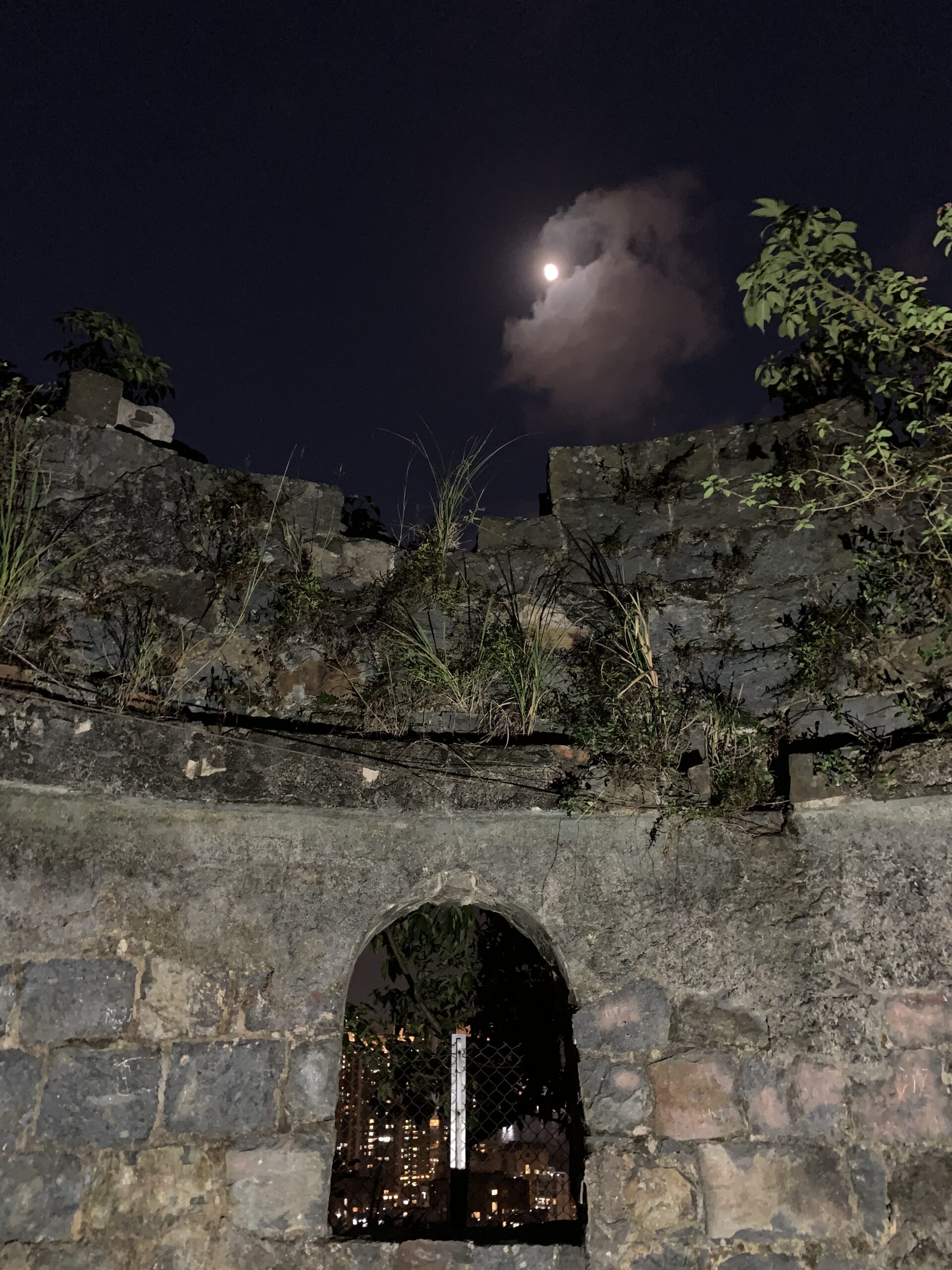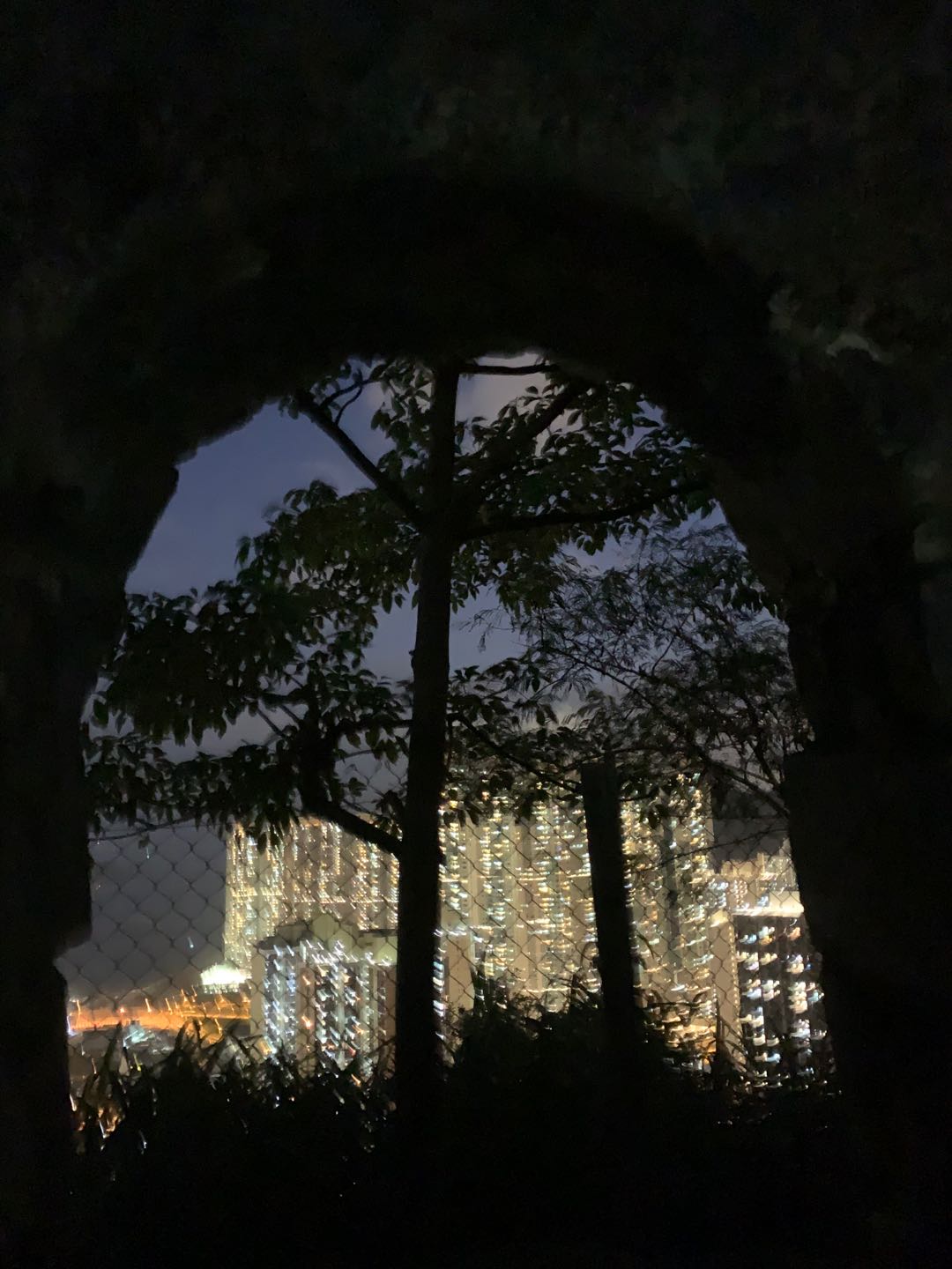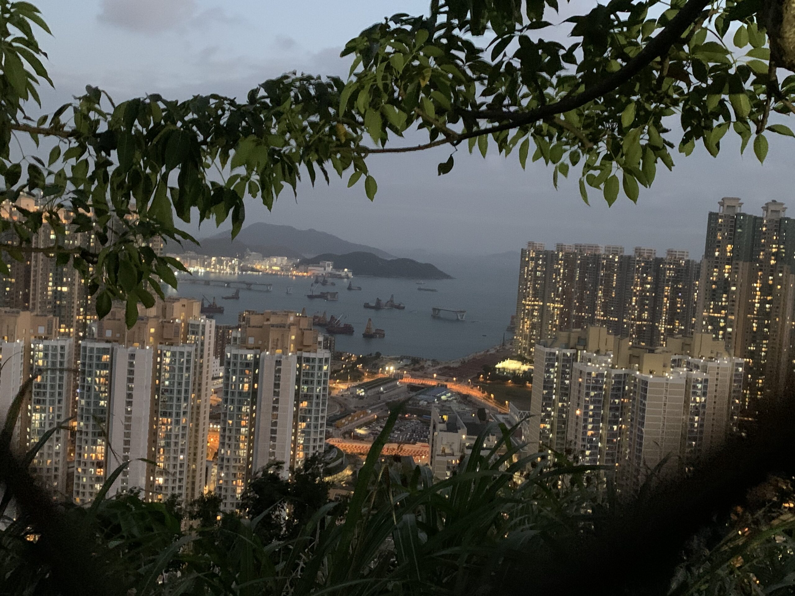 我們到時,天空剛黑,但月亮已經升起,山下整片卻是亮眼將軍澳和維多利亞港的夜景色攝入眼薕下。