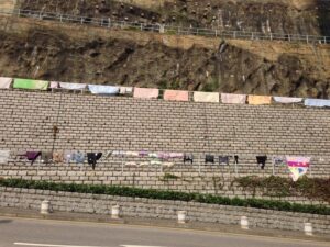 —-2020重阳节,由香港調景嶺地鐵出來,已經下午5點左右,我旗下記者陳耀領著我們,經過香港知專設計學院,穿過商場和公屋,便來到山邊一個「棉胎陣」,五顏六色好繽紛,及後一直沿著引水道旁的樓梯上升,這里曾是1949年民國淪陷時,很多民国时期军人及眷属被港英政府安置到此地(那時是一個小島,要渡船至此),那時此地就一直挂青天白日满地红旗至97年。