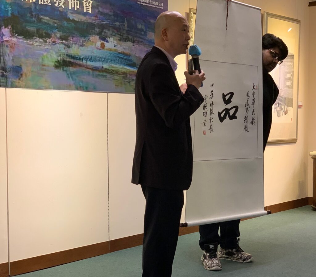 (中華時報/中華新聞通訊社11月18日香港訊)今天,由中華時報傳媒集團、粵港澳大灣區藝術聯合會、大中華民藏鑒賞協會等單位在香港雲峰畫苑舉辦了「“用一個字表達收藏界精髓”——藝術及收藏界精髓题字活動」和「藝術品價值與金融融創論壇活動」新聞發佈會。