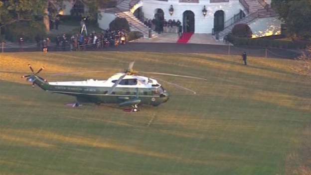 美国总统特朗普刚刚搭乘海军陆战队一号直升机离开白宫。