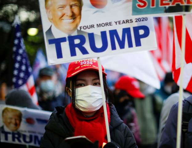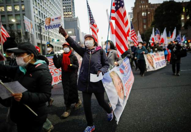 疫情下日本东京出现挺特朗普游行