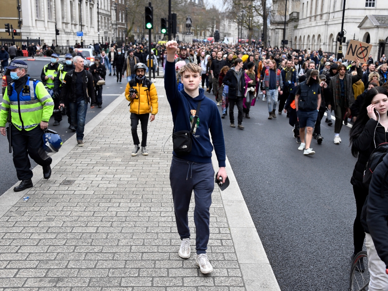 倫敦周末有民眾上街,反對抗疫封鎖措施。一名示威者說,很清楚新型冠狀病毒的害處,自己去年3月亦曾經受感染,但當局目前的封鎖措施,的確太多。有示威者就高叫自由及不要政府謊言等口號。
