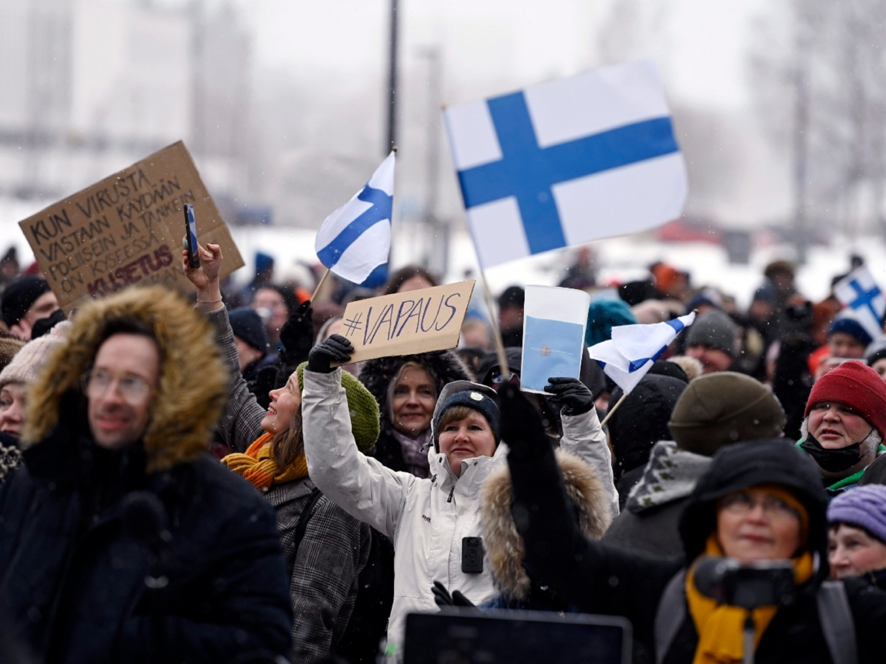 在芬蘭,警方估計約400名無戴口罩的人,聚集在首都赫爾辛基,抗議當局的封鎖措施。據報其他芬蘭城市,亦有零星集會。