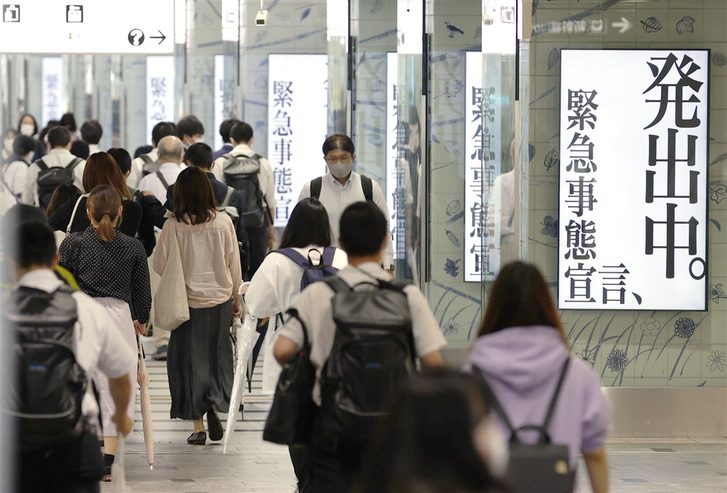 日本緊急事態宣言對象地區12日起擴大,納入愛知縣與福岡縣,對象地區擴大到6都府縣,原有的東京都等4都府縣也延長實施到月底;日本政府雖疾呼企業善用遠距工作以防疫,但通勤人潮並未明顯減少。