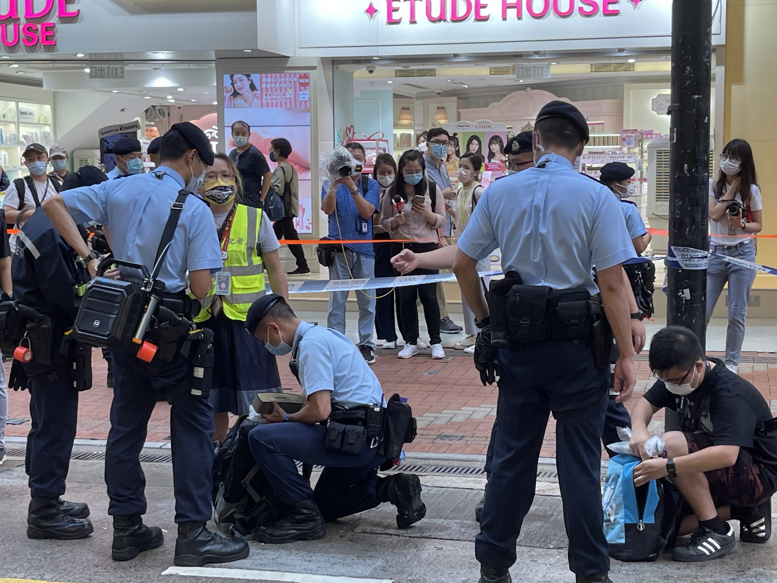 另外,有4名大學生晚上在旺角道天橋上廣播,並向途人派發提及前年反修例事件的單張,警員一度上前截查並登記資料。