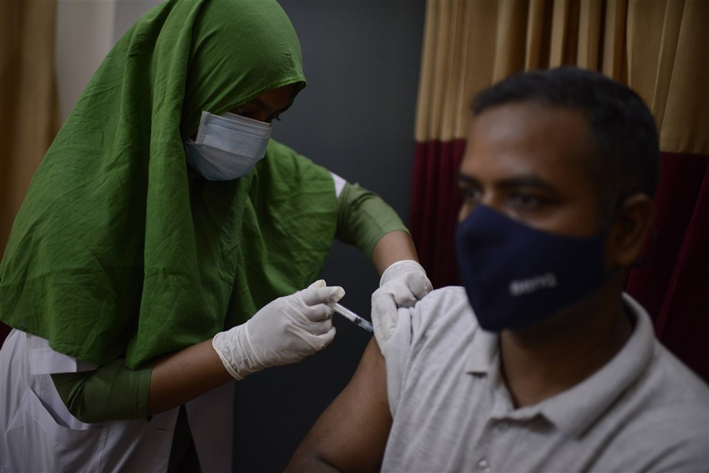 孟加拉當局25日宣布,由於感染Delta變異株的病例「危險而令人擔憂」地激增,28日將再度實施嚴格的封城措施。圖為孟加拉民眾接種COVID-19疫苗。(美聯社)