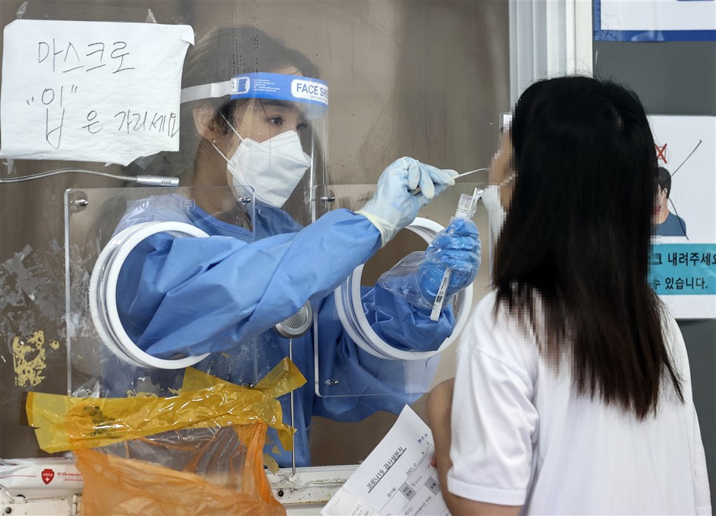 據統計,韓國境內確認至少416人感染Delta變種病毒,防疫當局5日表示,除疫情較嚴重的首都圈,Delta病毒疫情可能快速在非首都圈擴散。圖為首爾臨時篩檢站。(韓聯社)