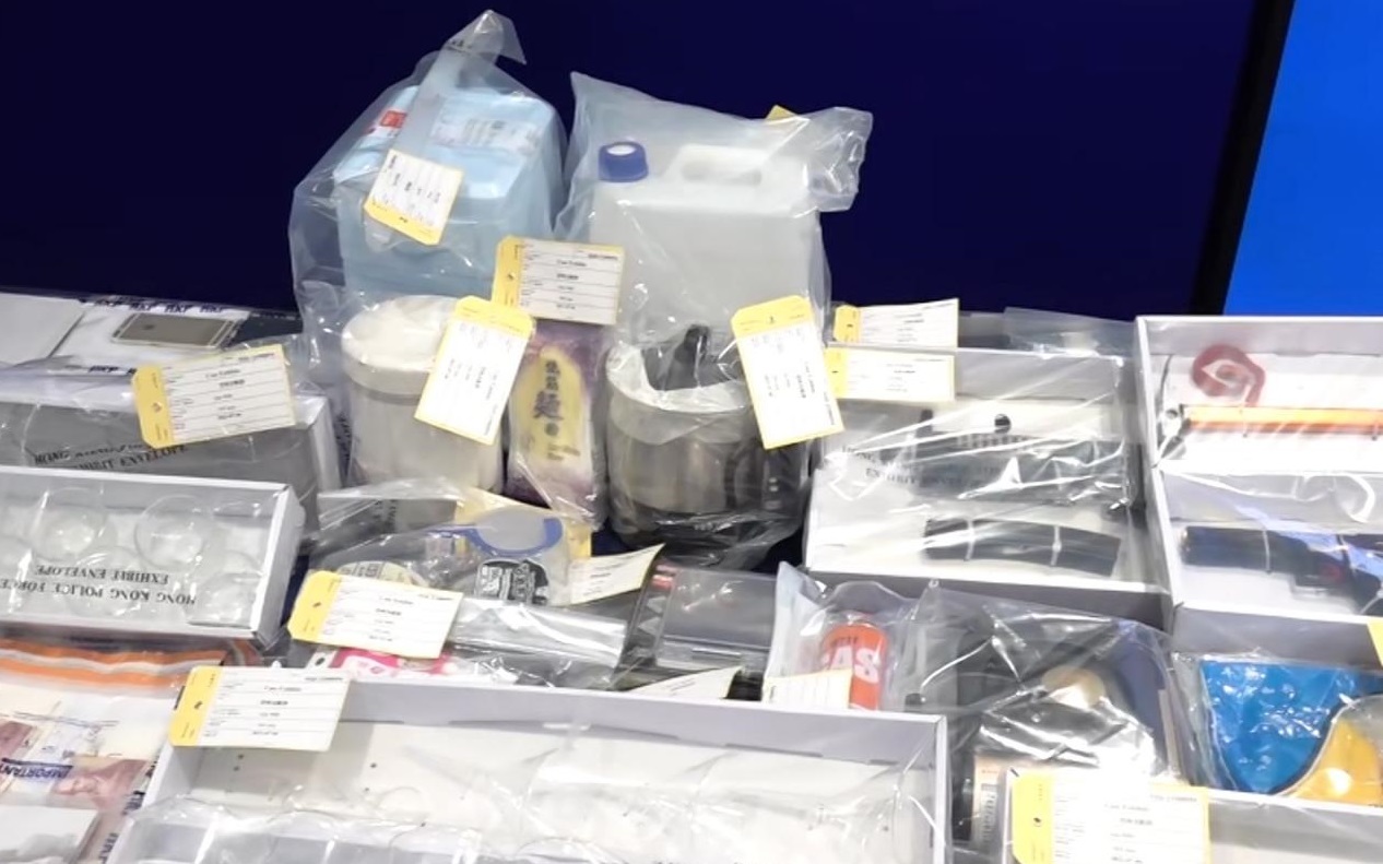 警方檢獲大批證物,包括少量炸藥、化工材料、製造炸彈的工具、氣槍、八萬元現金以及行動指南等等,相信已瓦解一個港獨組織。