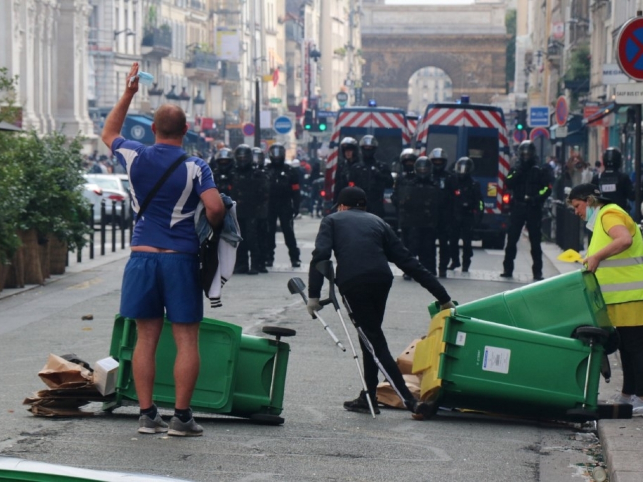 示威者批評馬克龍的政策完全不民主,歧視不注射疫苗的人。在巴黎,有示威者推翻垃圾筒及放火焚燒挖泥機,警察發射了幾輪催淚彈。
