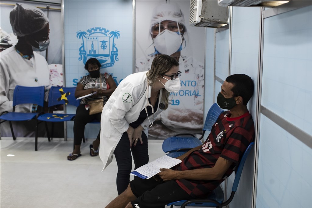 巴西里約熱內盧州衛生廳17日表示,Delta變種病毒株已成為當地的主要病毒株。圖為11日巴西COVID-19篩檢棚內民眾。(美聯社)