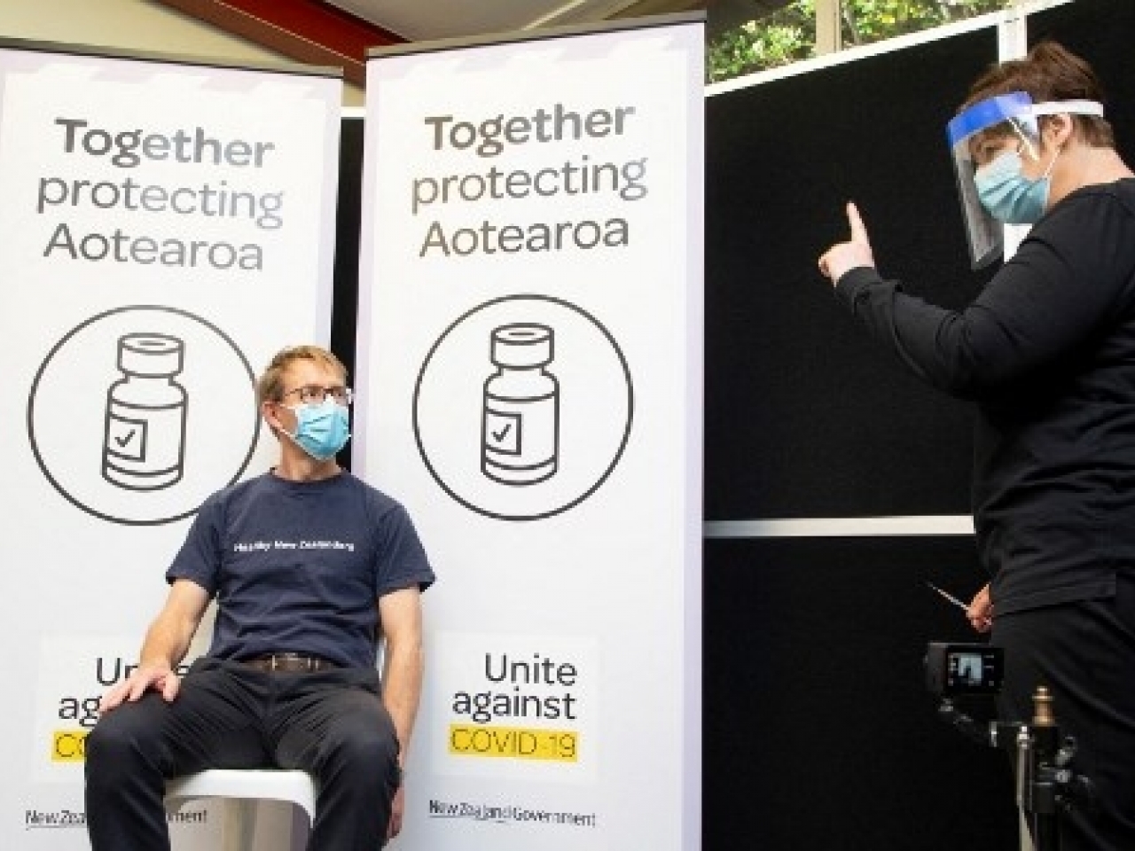 新西蘭衛生人員為民眾接種新冠疫苗。(法新社)