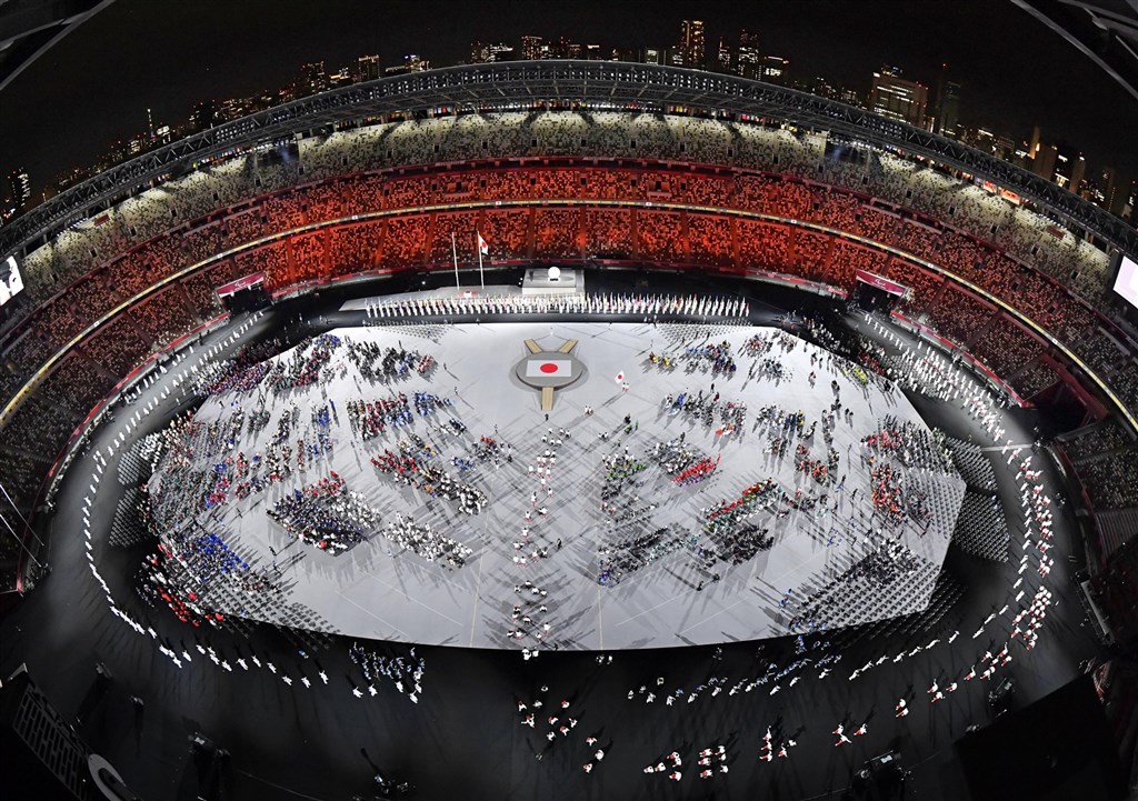 東京殘奧會開幕,場館上空發放煙花。(美聯社)